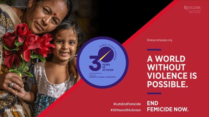 «16 Días de Activismo contra la Violencia de Género« (16 Days of Activism against Gender-Based Violence) es una campaña internacional anual que comienza el 25 de noviembre, Día Internacional para la Eliminación de la Violencia contra la Mujer, y se prolonga hasta el 10 de diciembre, Día de los Derechos Humanos.