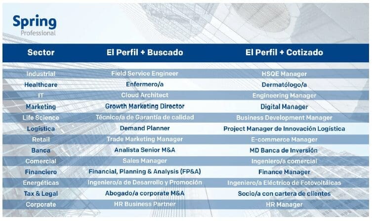 Se trata de una selección de perfiles estratégicos en 13 sectores, donde se establece cuál es el más buscado y cuál el más cotizado.